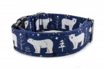 Obojek pro psy Polar Bear se vzorem ledního medvěda na modrém pozadí. Zvolte si druh a velikost obojku a další doplňky včetně jmenovky s telefonním číslem.